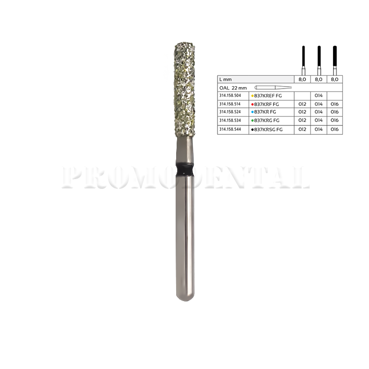 Un foret diamanté en forme de cylindre tronqué avec une partie de travail allongée est utilisé pour ouvrir les cavités carieuses et également pour développer des obturations. La forme du foret permet un travail rapide et efficace lors du développement des tissus dentaires durs, en travaillant dans l'émail. Le foret est également utilisé en prothèse en préparation de restaurations permanentes et notamment dans le meulage avec un pas de type épaulement.
